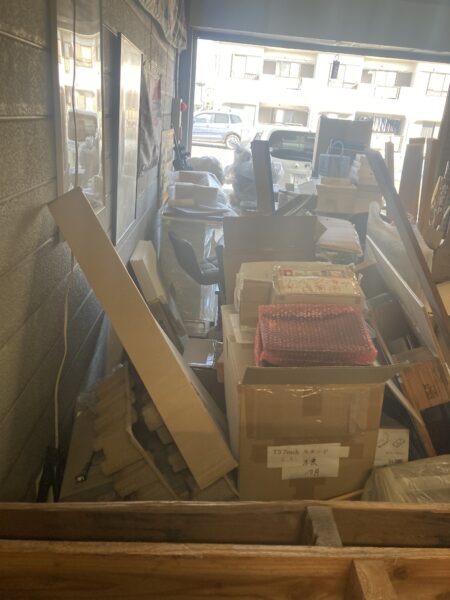 いつもリサイクラーブログを閲覧頂きまして有難うございます。営業部の清水です。今回は、ハイエース2台分の物量案件です。前の道が車両規制があり2t以上の貨物が入れないのと、通行禁止道路通行許可申請も間に合わない為の対応となりました。乗用車では難しい場合は、しっかり申請してトラックで対応しております。まずは、物量に関係なく何なりとご相談ください。
