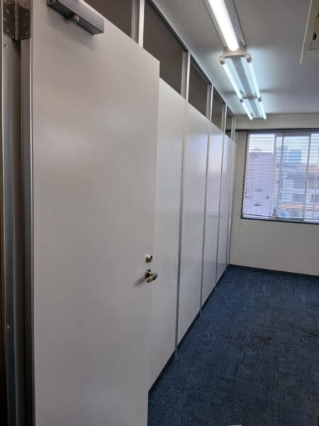 室内を空にしないといけないので床から天井まで仕切っているパーテーションの解体も行い、
