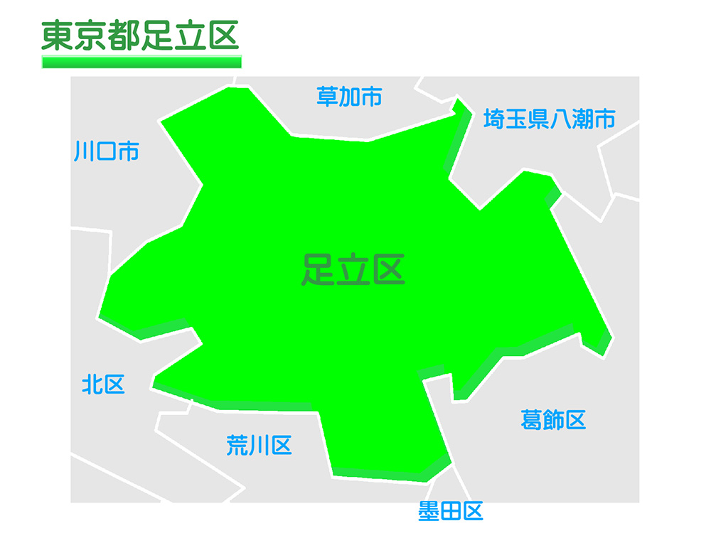 足立区は東京都の北東部に位置し、荒川や隅田川などの豊かな水辺環境に恵まれたエリアです。下町情緒を感じられる商店街や住宅地が広がる一方、再開発も進み、交通アクセスや生活利便性が向上しています。子育て支援や教育環境の充実にも力を入れており、都心へのアクセスと落ち着いた暮らしやすさを兼ね備えた地域として注目されています。